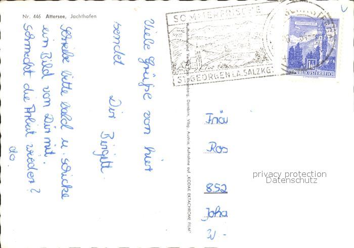 72436421 alte Postkarte Attersee Jachthafen postalisch gelaufen Erhaltung siehe scans KatCode: 11390315041702