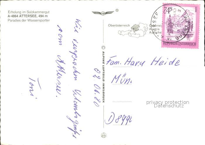 72213831 alte Postkarte Attersee mit Schafberg Fliegeraufnahme postalisch gelaufen Erhaltung siehe scans KatCode: 11390315041702