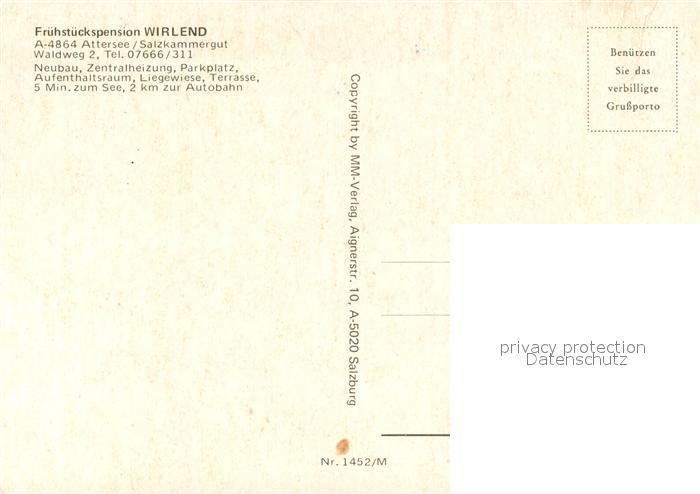 13223036 Attersee Pension Wirlend postalisch nicht gelaufen Erhaltung siehe scans [LiesaD40] KatCode: 11390315041702