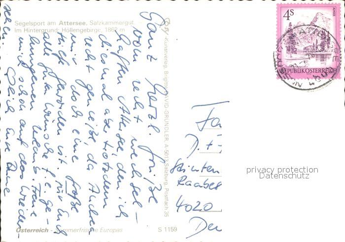 72379297 alte Postkarte Attersee Segelsport Hoellengebirge postalisch gelaufen Erhaltung siehe scans KatCode: 11390315041702