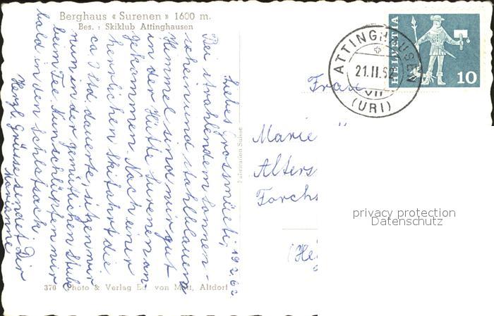 11779212 alte Postkarte Attinghausen Berghaus Surenen postalisch gelaufen KatCode: 11470220685182