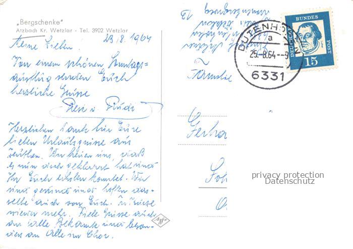 74039815 alte Postkarte Atzbach Lahnau Wetzlar Hessen Bergschenke Gastraum postalisch gelaufen Erhaltung siehe scans [FriedD77] KatCode: 11110006532015