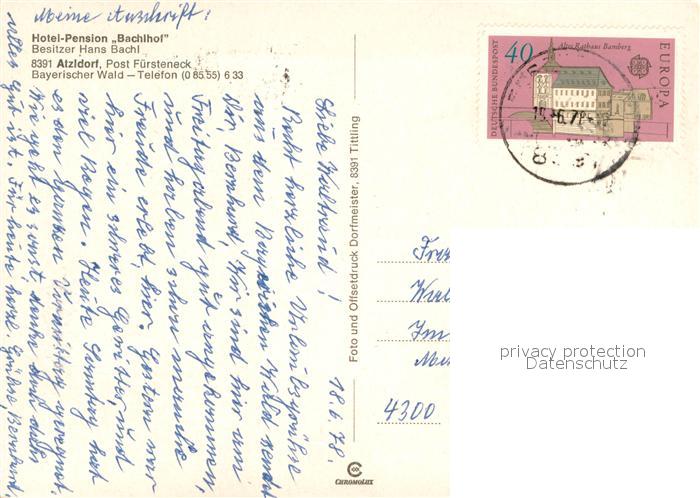 73654335 alte Postkarte Atzldorf Hotel Pension Bachlhof Restaurant Gastraeume postalisch gelaufen Erhaltung siehe scans [WerneD78] KatCode: 11110009272119