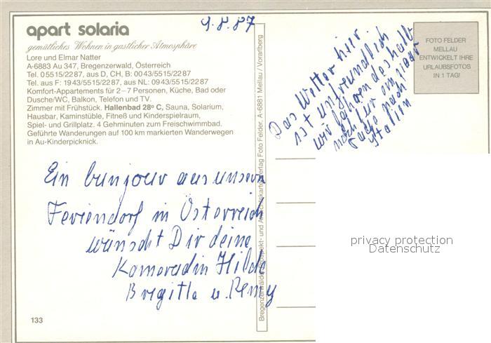 73027483 Au Bregenzerwald Apart Solaria postalisch nicht gelaufen Erhaltung siehe scans [KathaD81] KatCode: 11390341080233