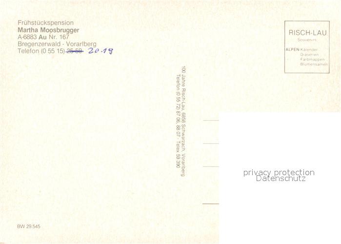 73050800 Au Bregenzerwald Fruehstueckspension Martha Moosbrugger postalisch nicht gelaufen Erhaltung siehe scans [KathaD81] KatCode: 11390341080233