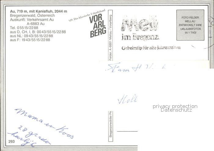 72271765 alte Postkarte Au Bregenzerwald Kanisfluh Kirche postalisch gelaufen Erhaltung siehe scans KatCode: 11390341080233
