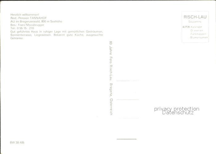 72066362 Au Bregenzerwald Restaurant Pension Tannahof postalisch nicht gelaufen Erhaltung siehe scans KatCode: 11390341080233