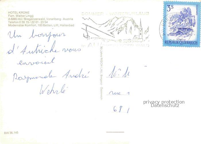 74032376 alte Postkarte Au Bregenzerwald Schoppernau Vorarlberg AT Hotel Krone Winterpanorama postalisch gelaufen Erhaltung siehe scans [FriedD77] KatCode: 11390341080233