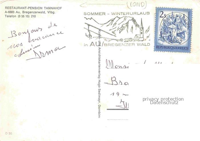 74042445 alte Postkarte Au Bregenzerwald Schoppernau Vorarlberg AT Restaurant Tannahof Gastraeume Trachtenmaedchen postalisch gelaufen Erhaltung siehe scans [WerneD78] KatCode: 11390341080233