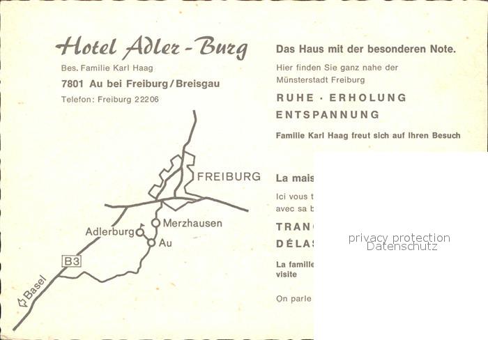 71832394 Au Breisgau Hotel Adler-Burg postalisch nicht gelaufen Werbekarte (keine Postkarte) Erhaltung siehe scans KatCode: 11110008315003