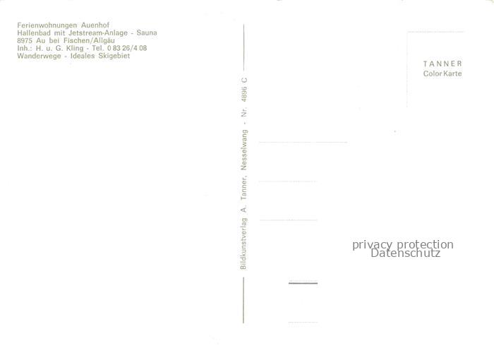 74137308 Au Fischen Allgaeu Ferienwohnungen Auenhof postalisch nicht gelaufen Erhaltung siehe scans [WerneD78] Wern Katcode 11110009780121