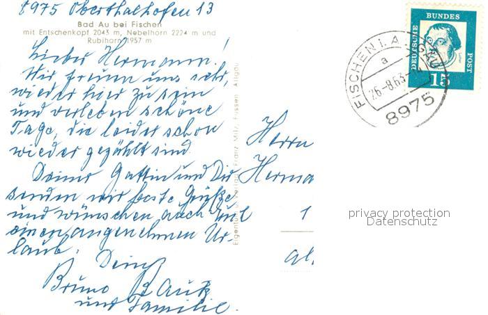 43352198 alte Postkarte Au Fischen Allgaeu mit Entschenkopf Nebelhorn und Rubihorn postalisch gelaufen Erhaltung siehe scans [WerneD78] KatCode: 11110009780121