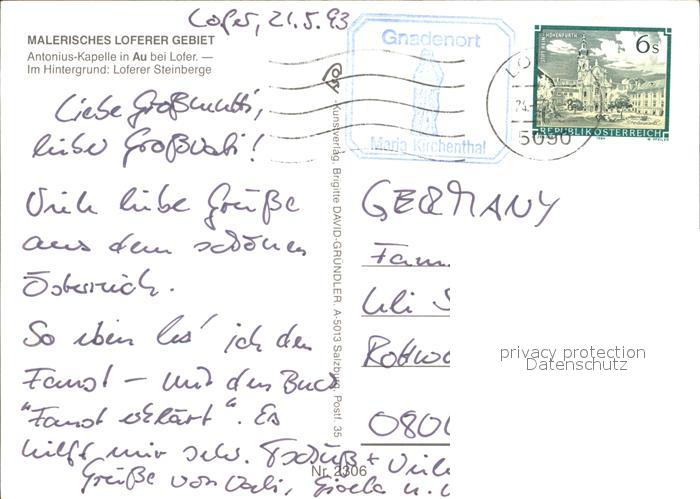 72398559 alte Postkarte Au Lofer Antonius-Kapelle Loferer Steinberge postalisch gelaufen Erhaltung siehe scans KatCode: 11390322050610