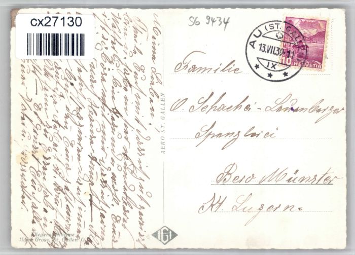 10849928 alte Postkarte Au SG Fliegeraufnahme postalisch gelaufen KatCode: 11470190555560