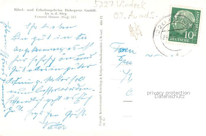 33703459 alte Postkarte Au Siegkreis Bibel und Erholungsheim Hohegrete postalisch gelaufen Erhaltung siehe scans [WerneD78] KatCode: 11110005382076