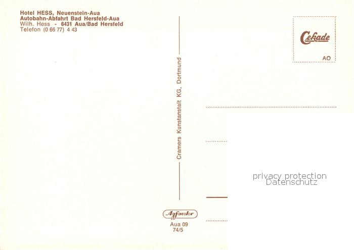 73087612 Aua Hotel Hess Autobahn Abfahrt Bad Hersfeld postalisch nicht gelaufen Erhaltung siehe scans [KathaD81] KatCode: 11110006632014