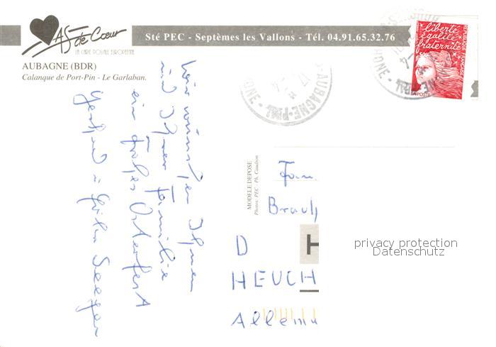 13358581 carte postale Aubagne Calanque de Port Pin Le Garlaban postalisch gelaufen Erhaltung siehe scans [WerneD78] KatCode: 11170013313005