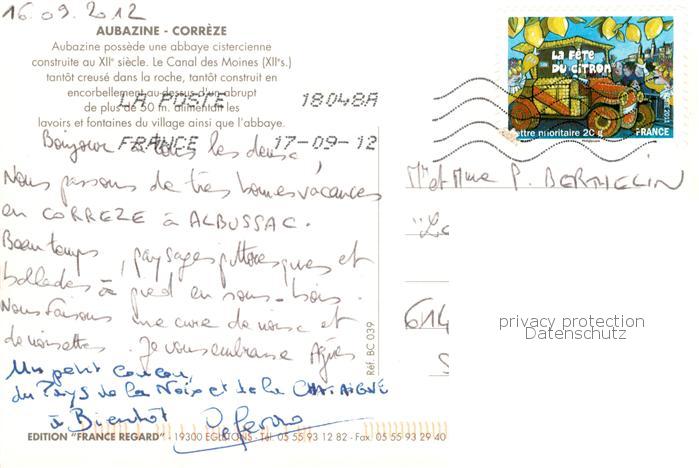 13826101 Aubazine Aubazines 19 Correze possede une abbaye cistercienne le Canal des Moines tantat creuse dans la roche postalisch gelaufen Erhaltung siehe scans [WerneD78] carte postale Wern Katcode 11170019119013