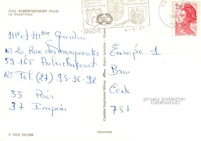 13513573 carte postale Auberchicourt La Grand Place postalisch gelaufen Erhaltung siehe scans [WerneD78] KatCode: 11170059359024