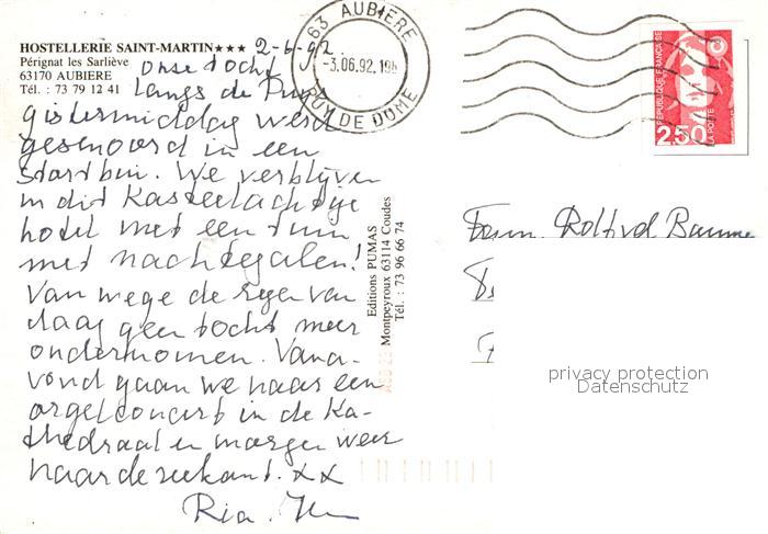 12957028 carte postale Aubiere Hostellerie Saint Martin postalisch gelaufen Erhaltung siehe scans [FriedD77] KatCode: 11170063263014