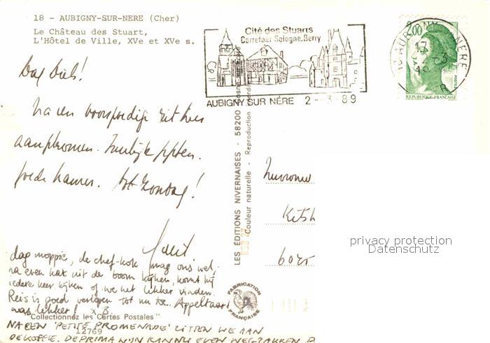 12698360 carte postale Aubigny-sur-Nere Chateau des Stuart Hotel de Ville postalisch gelaufen Erhaltung siehe scans [WerneD78] KatCode: 11170018318015