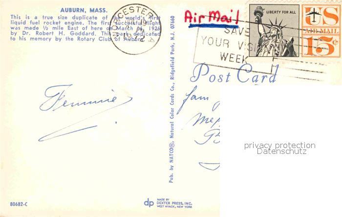 72897161 old postcard Auburn Massachusetts Rakete im Park postalisch gelaufen Erhaltung siehe scans [AndreD76] KatCode: 14140230000000