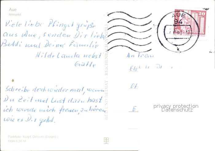 alte Postkarte Aue Erzgebirge Altmarkt postalisch gelaufen Erhaltung siehe scans