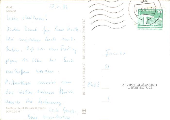 72410372 alte Postkarte Aue Erzgebirge Altmarkt postalisch gelaufen Erhaltung siehe scans KatCode: 11110014191040
