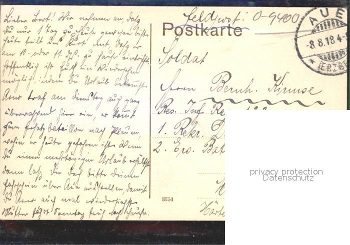 42251487 alte Postkarte Aue Erzgebirge Koenig Friedrich August Warte postalisch gelaufen Feldpost Erhaltung siehe scans KatCode: 11110014191040