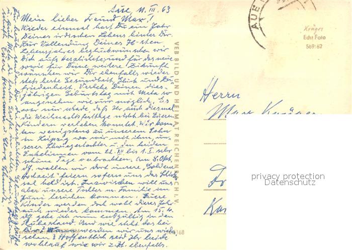 73043765 alte Postkarte Aue Erzgebirge Kulturhaus Ernst Thaelmann Blick zum Heidelberg Stalinplatz Hauptpost Muldenbruecken postalisch gelaufen Erhaltung siehe scans [WerneD78] KatCode: 11110014191040