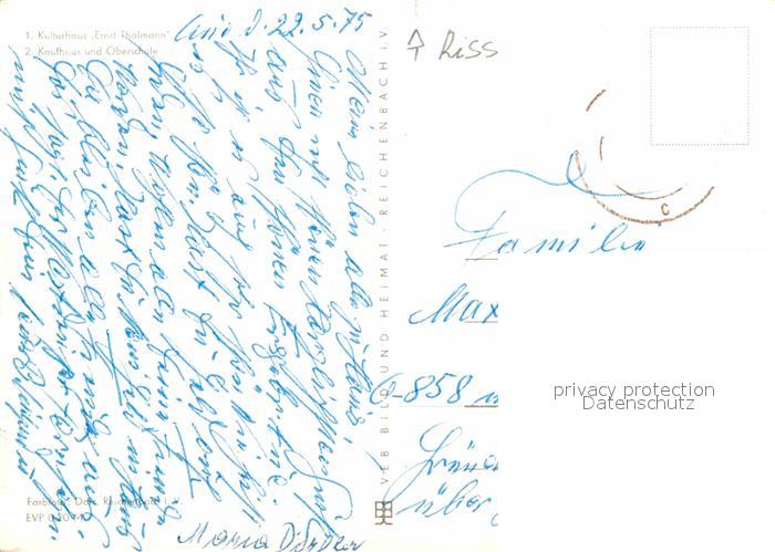 72773369 alte Postkarte Aue Erzgebirge Kulturhaus Ernst Thaelmann Kaufhaus Oberschule postalisch gelaufen Erhaltung siehe scans [FriedD77] KatCode: 11110014191040
