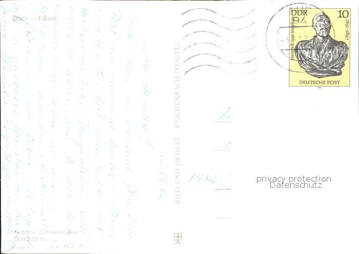 72382532 alte Postkarte Aue Erzgebirge Ortsansicht postalisch gelaufen Erhaltung siehe scans KatCode: 11110014191040