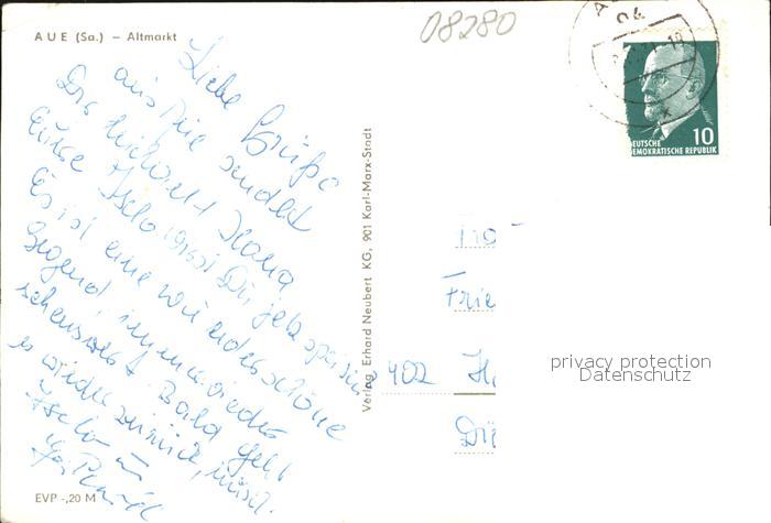 72474706 alte Postkarte Aue Sachsen Altmarkt postalisch gelaufen Erhaltung siehe scans KatCode: 11110014191040