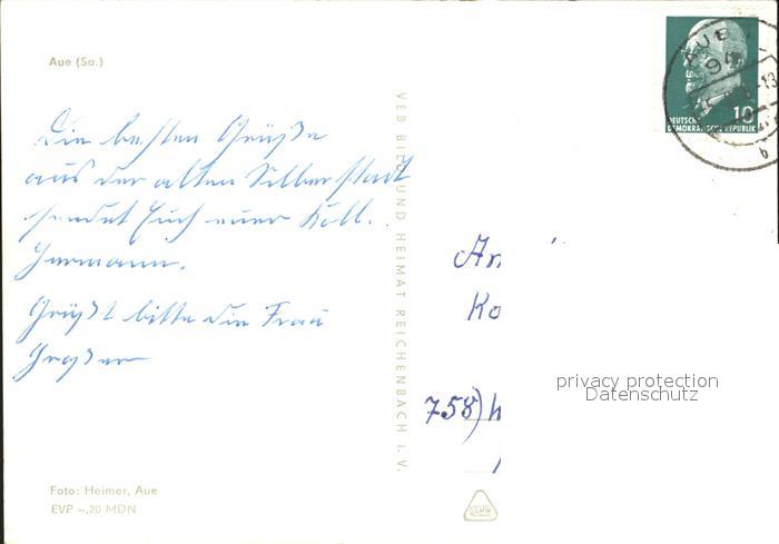 72138563 alte Postkarte Aue Sachsen Brueckepartie postalisch gelaufen Erhaltung siehe scans KatCode: 11110014191040