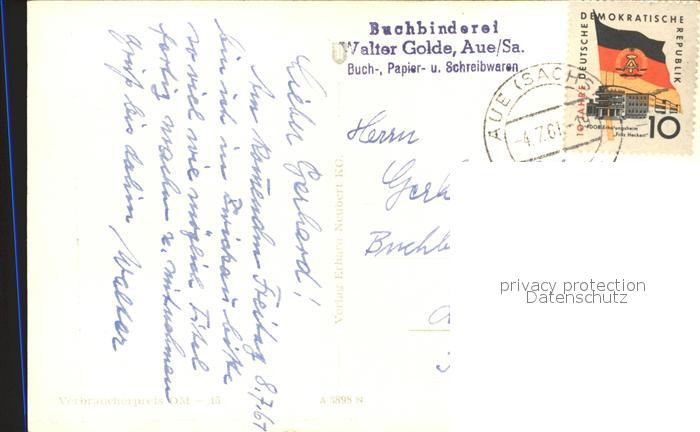 72327234 alte Postkarte Aue Sachsen Kirche Strassenpartie Panorama postalisch gelaufen Erhaltung siehe scans KatCode: 11110014191040