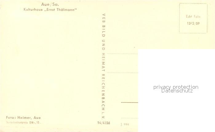 73722366 Aue Sachsen Kulturhaus Ernst Thaelmann postalisch nicht gelaufen Erhaltung siehe scans [WerneD78] KatCode: 11110014191040