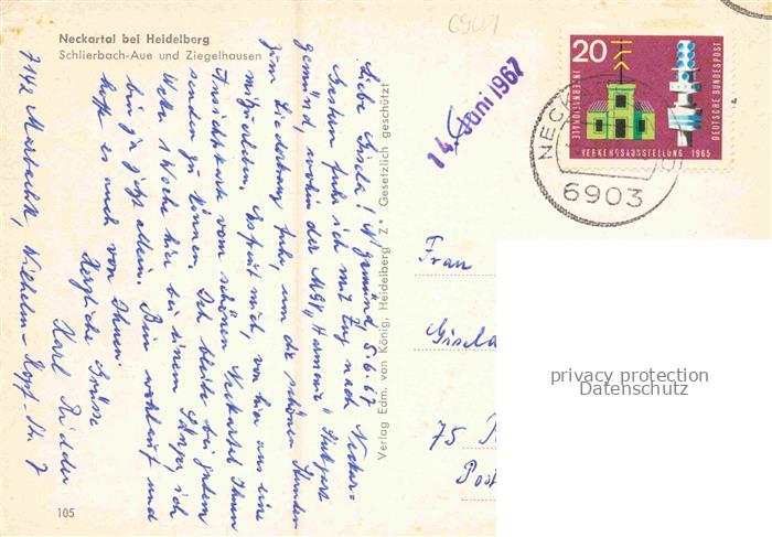 74048521 alte Postkarte Aue Schlierbach Neckartalblick mit Ziegelhausen postalisch gelaufen Erhaltung siehe scans [WerneD78] KatCode: 11110008221000