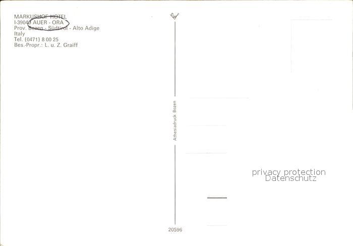 Auer Ora Suedtirol Hotel Markushof postalisch nicht gelaufen Erhaltung siehe scans