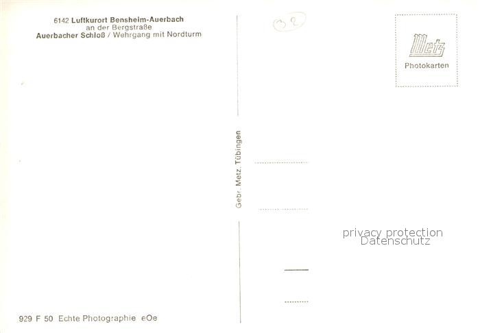 73102004 Auerbach Bergstrasse Auerbacher Schloss Wehrgang Nordturm postalisch nicht gelaufen Erhaltung siehe scans [KathaD81] KatCode: 11110006431002