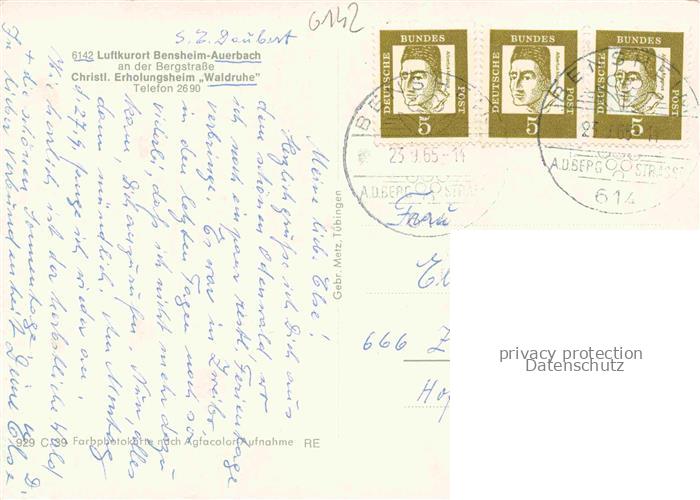 74063870 alte Postkarte Auerbach Bergstrasse Bensheim Hessen Christliches Erholungsheim Waldruhe postalisch gelaufen Erhaltung siehe scans [FriedD77] KatCode: 11110006431002