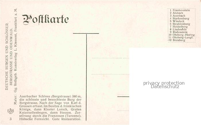 74064804 Auerbach Bergstrasse Bensheim Hessen Schloss Auerbach Kuenstlerkarte postalisch nicht gelaufen Erhaltung siehe scans [FriedD77] KatCode: 11110006431002