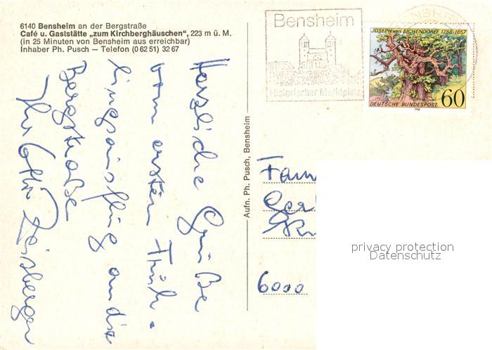 73212769 alte Postkarte Auerbach Bergstrasse Blick vom Kirchberghaeuschen postalisch gelaufen Erhaltung siehe scans [WerneD78] KatCode: 11110006431002
