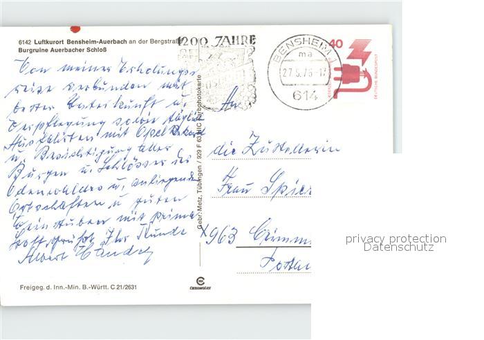 72302261 alte Postkarte Auerbach Bergstrasse Burgruine Aucherbach Schloss postalisch gelaufen Erhaltung siehe scans KatCode: 11110006431002