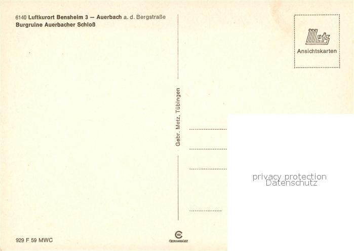 73205219 Auerbach Bergstrasse Burgruine Auerbacher Schloss postalisch nicht gelaufen Erhaltung siehe scans [FriedD77] KatCode: 11110006431002