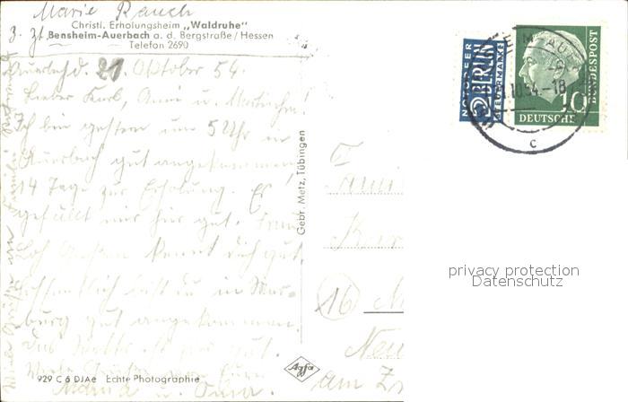 72595374 alte Postkarte Auerbach Bergstrasse Erholungsheim Waldruhe postalisch gelaufen Erhaltung siehe scans [AntonD74] KatCode: 11110006431002