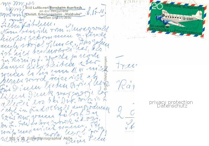 72831369 alte Postkarte Auerbach Bergstrasse Erholungsheim Waldruhe postalisch gelaufen Erhaltung siehe scans [PaolaD17] KatCode: 11110006431002