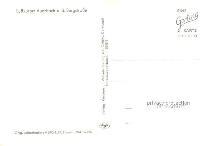 33626595 Auerbach Bergstrasse Fliegeraufnahme postalisch nicht gelaufen Erhaltung siehe scans [PaolaD17] KatCode: 11110006431002
