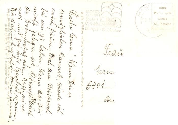 73871378 alte Postkarte Auerbach Bergstrasse Fliegeraufnahme postalisch gelaufen Erhaltung siehe scans [WerneD78] KatCode: 11110006431002