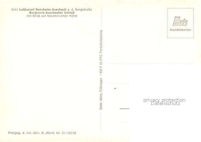 73093763 Auerbach Bergstrasse Fliegeraufnahme Burgruine Auerbacher Schloss Neunkirchner Hoehe postalisch nicht gelaufen Erhaltung siehe scans [KathaD81] KatCode: 11110006431002