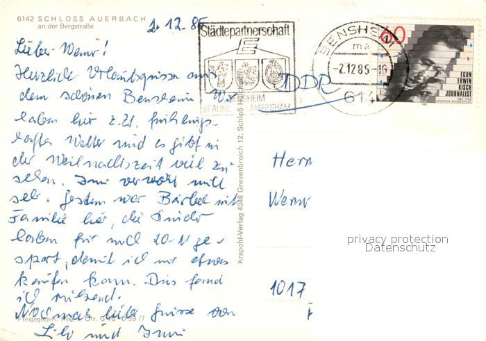 73085252 alte Postkarte Auerbach Bergstrasse Schloss Auerbach Fliegeraufnahme postalisch gelaufen Erhaltung siehe scans [FriedD77] KatCode: 11110006431002